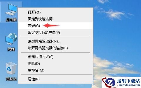 1、桌面【右键】点击此电脑,在打开的菜单项中,选择【管理】;