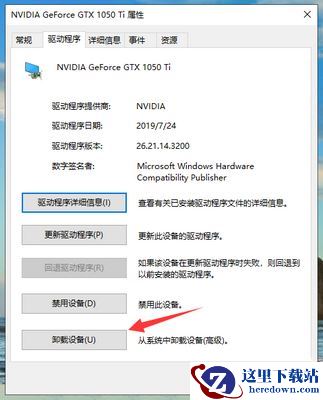 3、显卡驱动属性窗口中,点击【卸载设备】,从系统中卸载设备(高级);