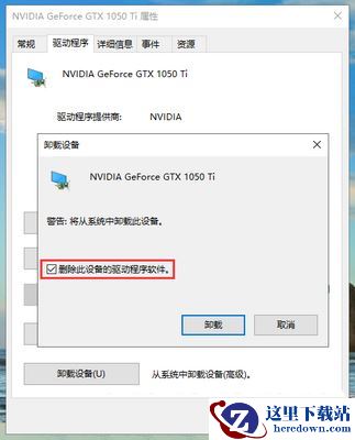 4、卸载设备窗口中,记得【勾选删除此设备的驱动程序软件】,然后点击【卸载】;