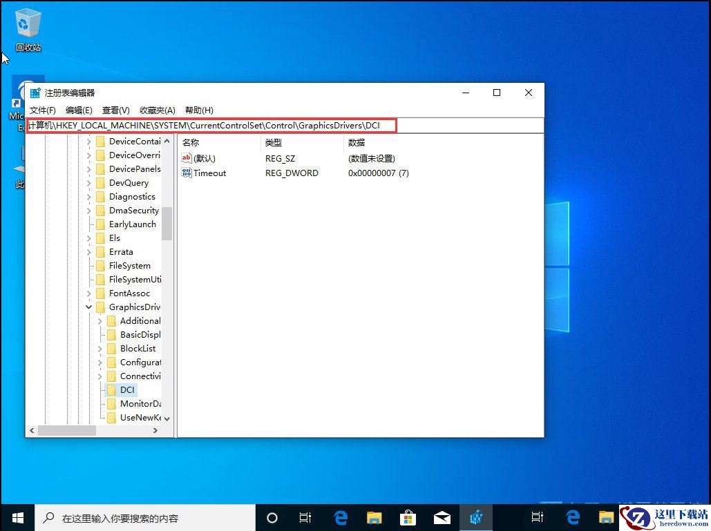 3、接着,点击注册表左侧【DCI】,再【右键】点击注册表右侧【Timeout】,在打开的菜单项中,选择【修改】;