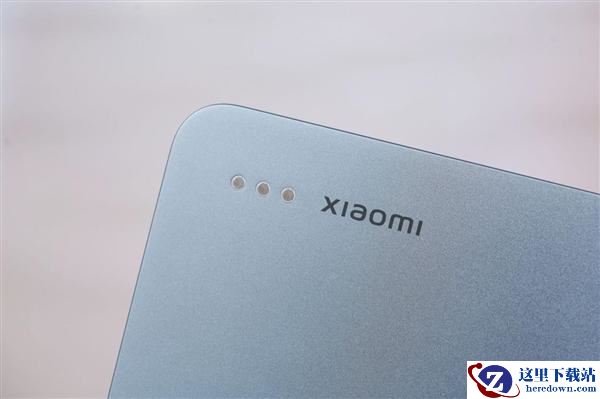背部左上角是三颗用于连接键盘的金属触点以及Xiaomi的LOGO。
