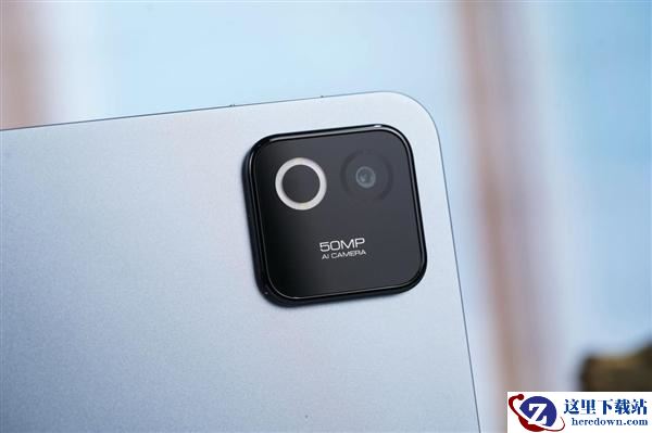 背部右上角为相机DECO,整个相机模组为黑色的圆角矩形,由一颗5000W像素的镜头以及两颗灯珠组成的环形闪光灯。下方是50MP和AI CAMERA的标识。