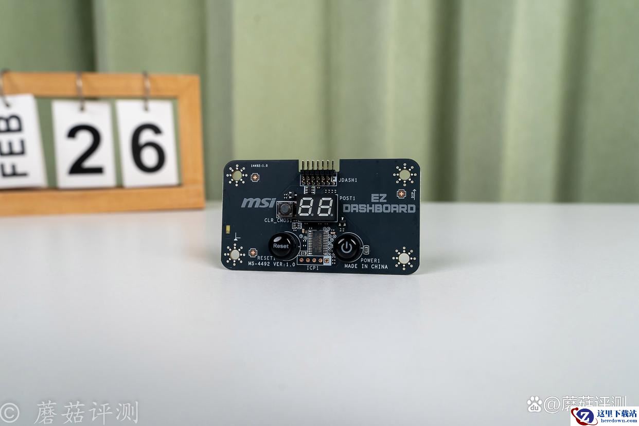 ▼这块拓展小板看着也非常不错,有独立的开机键、重启键和清除BIOS按键,方便日常超频使用。