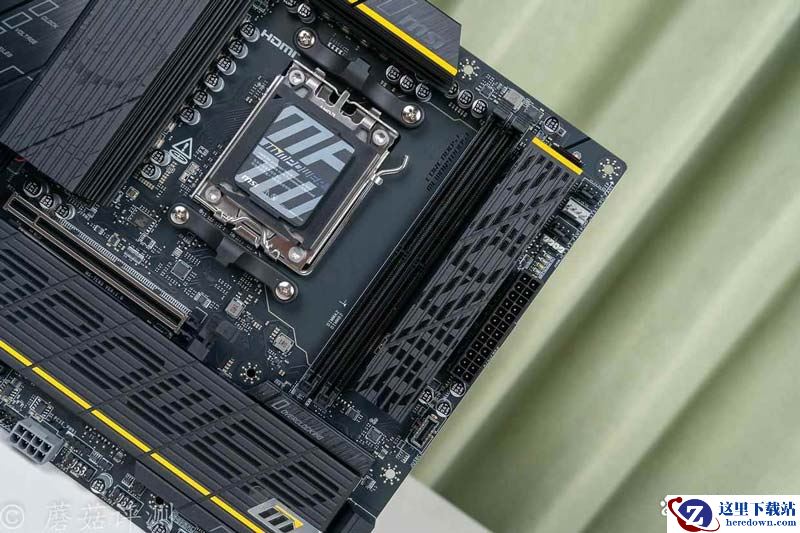 ▼这块主板标配两条内存插槽,且整体的位置和处理器插座一起组成完美的等腰三角形,可以达成DDR5内存的完美布线,从而让其拥有搭配8000系列cpu至高超频10200+MT/s、搭配9000系列cpu至高超频8400+MT/s的好成绩,非常厉害。