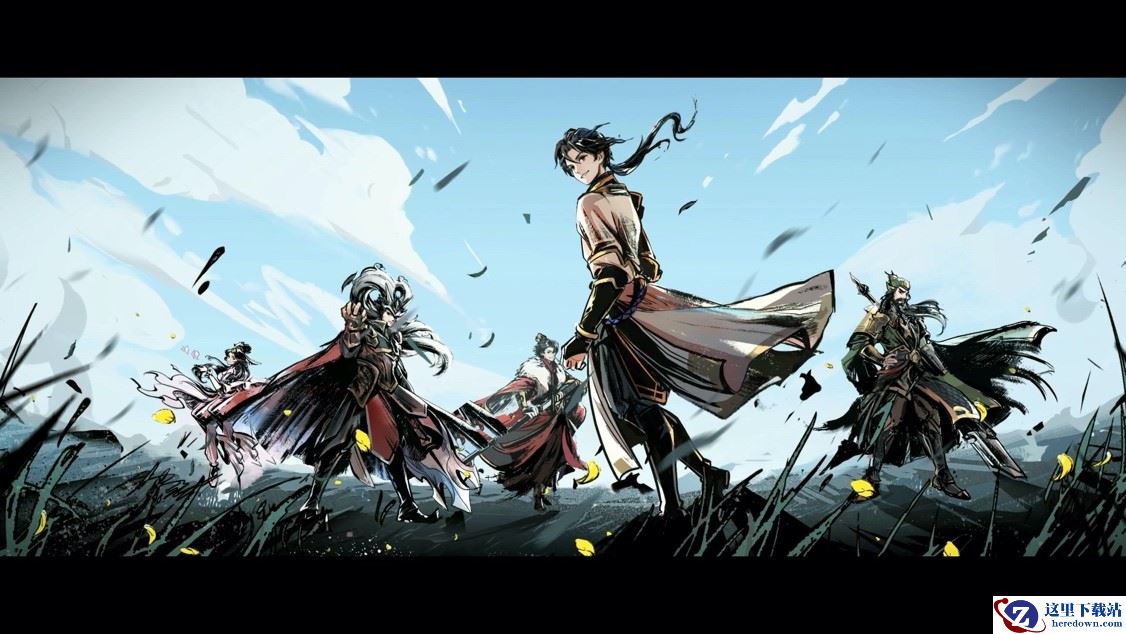视频开头,就呈现出了极高水准的美术功底,有别于传统二次元浓墨重彩的渲染,画面以雄鹰俯瞰的视角切入,仿毛笔笔触、“轻描淡写”之间勾勒出一个恢弘的三国世界。
