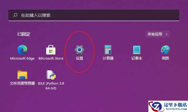 1、按 Win 键,或点击任务栏上的开始图标,然后在已固定的应用中,找到并点击设置;