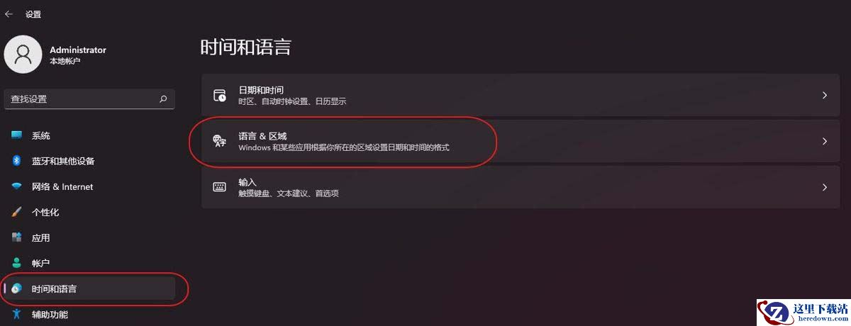 2、设置(Win+i)窗口,左侧点击时间和语言,右侧点击时间和语言下的语言 & 区域(Windows 和某些应用根据你所在的区域设置日期和时间的格式);