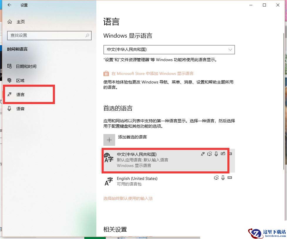 2、时间和语言主页设置窗口中,左侧点击语言;