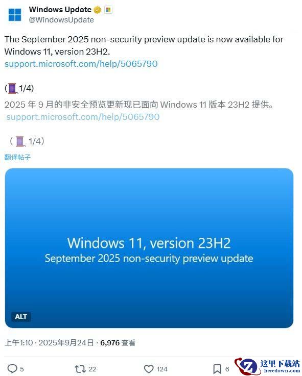 微软今天面 Win11 23H2 用户发布了最新的 2025 年 9 月可选更新 KB5065790,升级后 OS 系统版本号将升至 Build 22631.5984。