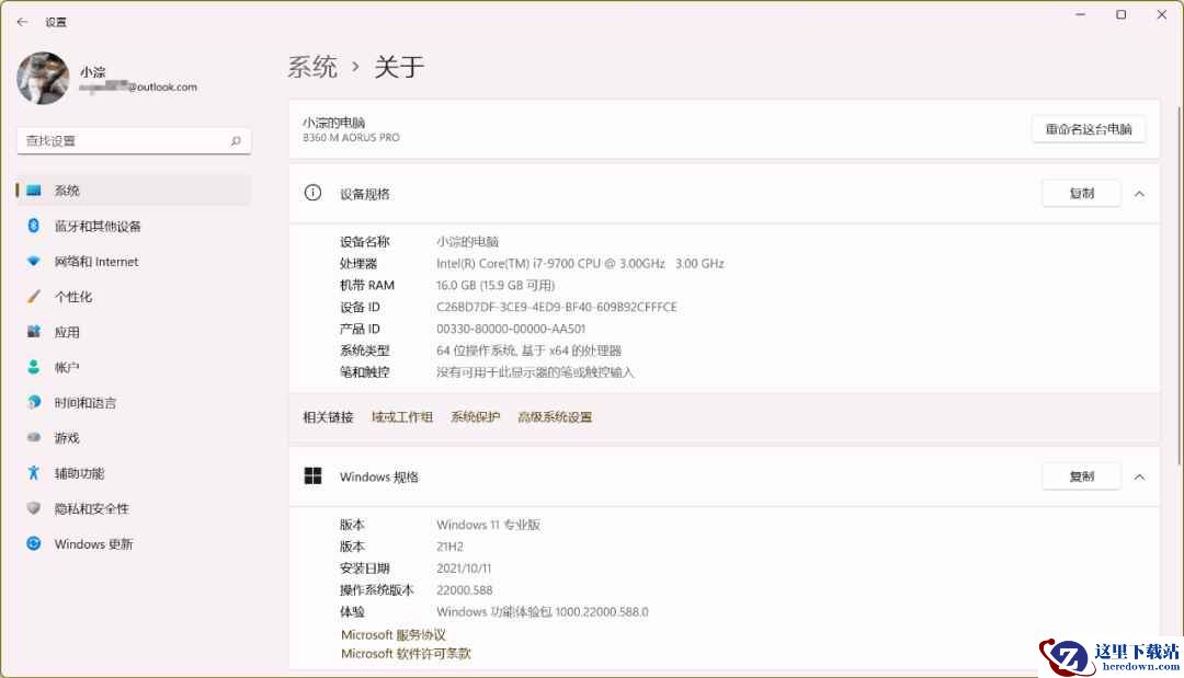 1、按 Win+I 打开设置 – 系统– 关于,查看设备规格,这里包括 CPU 型号、内存容量、系统版本等。