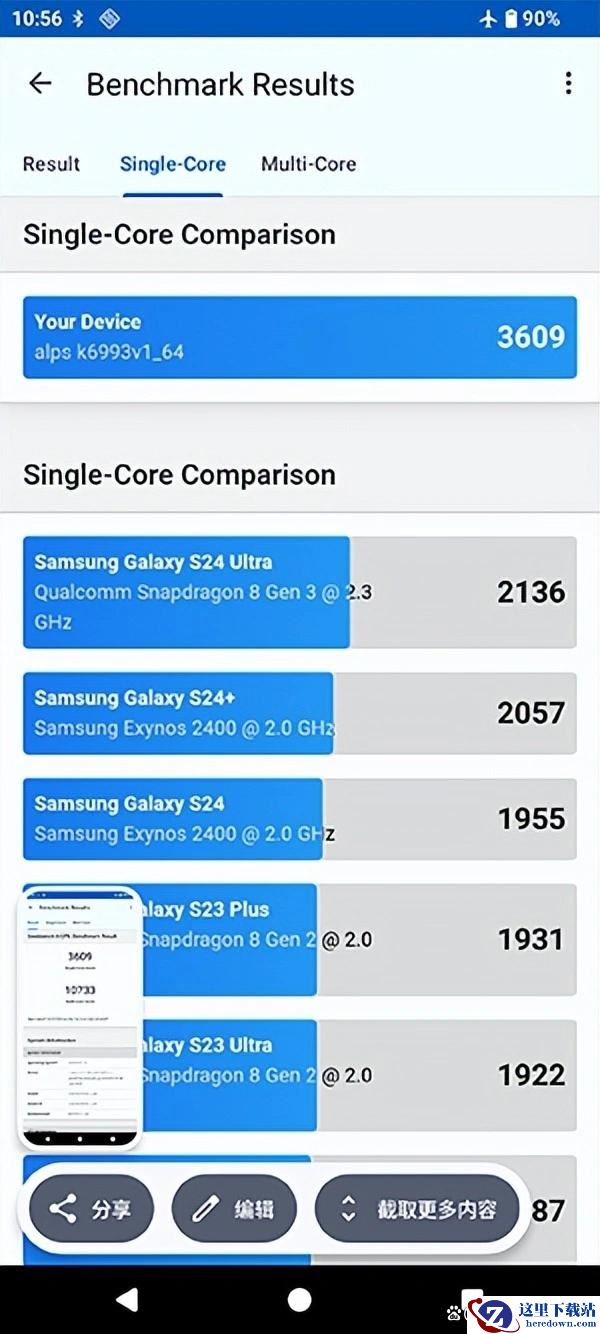 现场测试环境为室温22°,多次跑分稳定,GeekBnech 6最佳成绩单核3609,多核10733,相比去年的天玑9400 GeekBnech 6单核成绩2916,多核成绩9178,可以看到C1 Ultra对于单核性能提升是肉眼可见的。