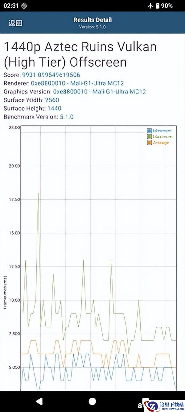 在GFX 1440P Aztec Ruins Vulkan项目为 154 FPS,相比上一代天玑9400的128 FPS,GPU性能大进化。后者压力更高,从过程图来说,天玑9500也是轻松拿捏,并没有“撞墙”的情况,不免让我们大胆畅想一下,未来的《原神》、《崩铁》等游戏的画质核帧率是否会突破1080P+60的“常规”表现,更高分辨率、更高帧率的游戏体验似乎不远了。