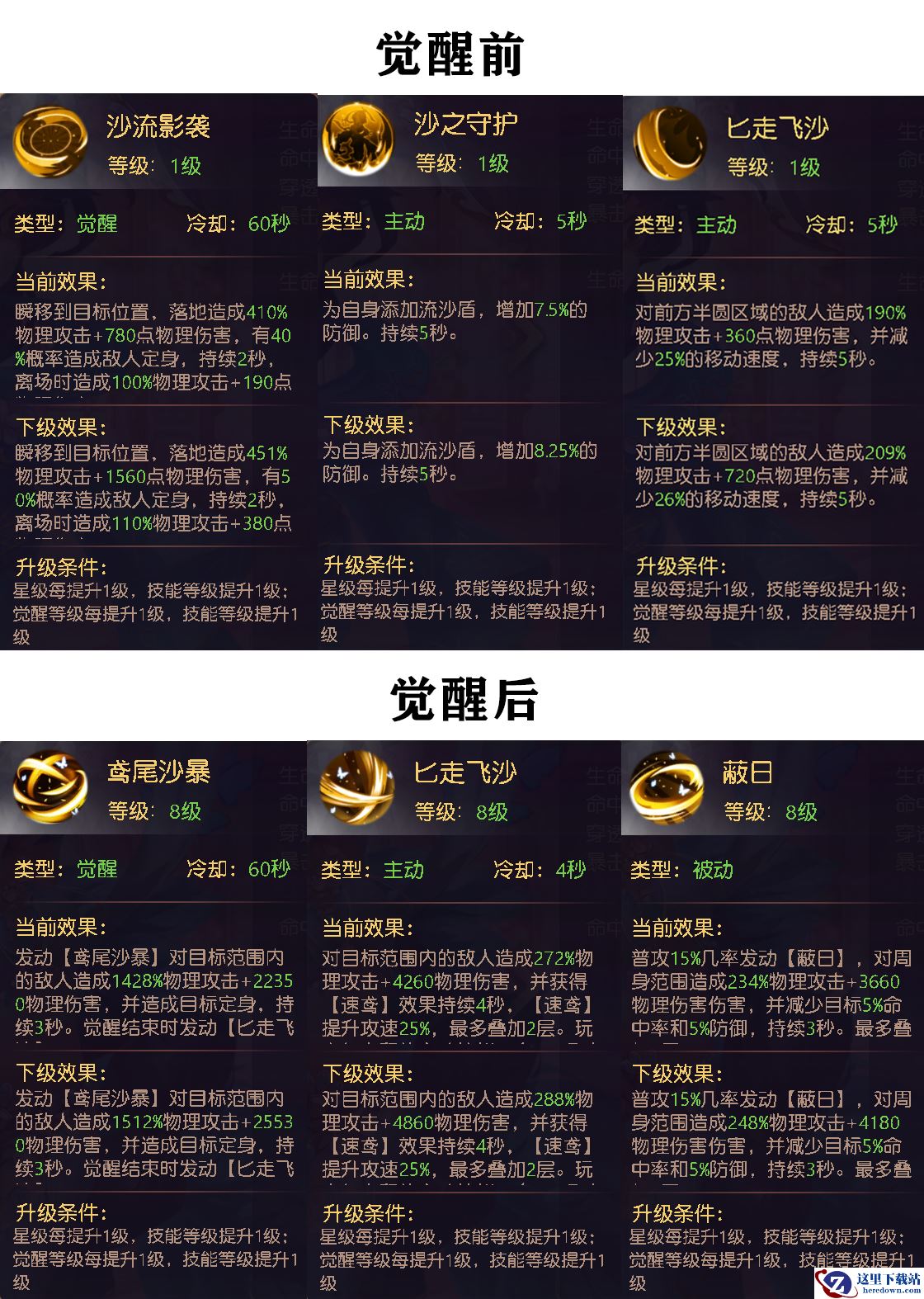 觉醒后伙伴技能新增攻速和防御效果,主技能匕走飞沙轻松打出爆炸伤害,轻松刷本不是梦~