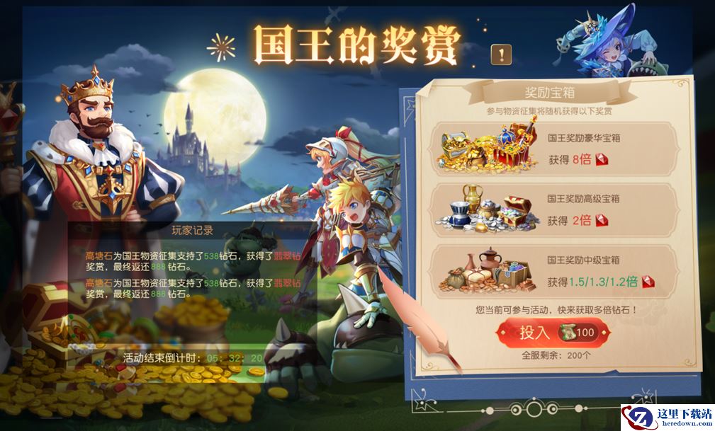 王国物资征集,投入既有奖赏!超高返率,等你玩转!