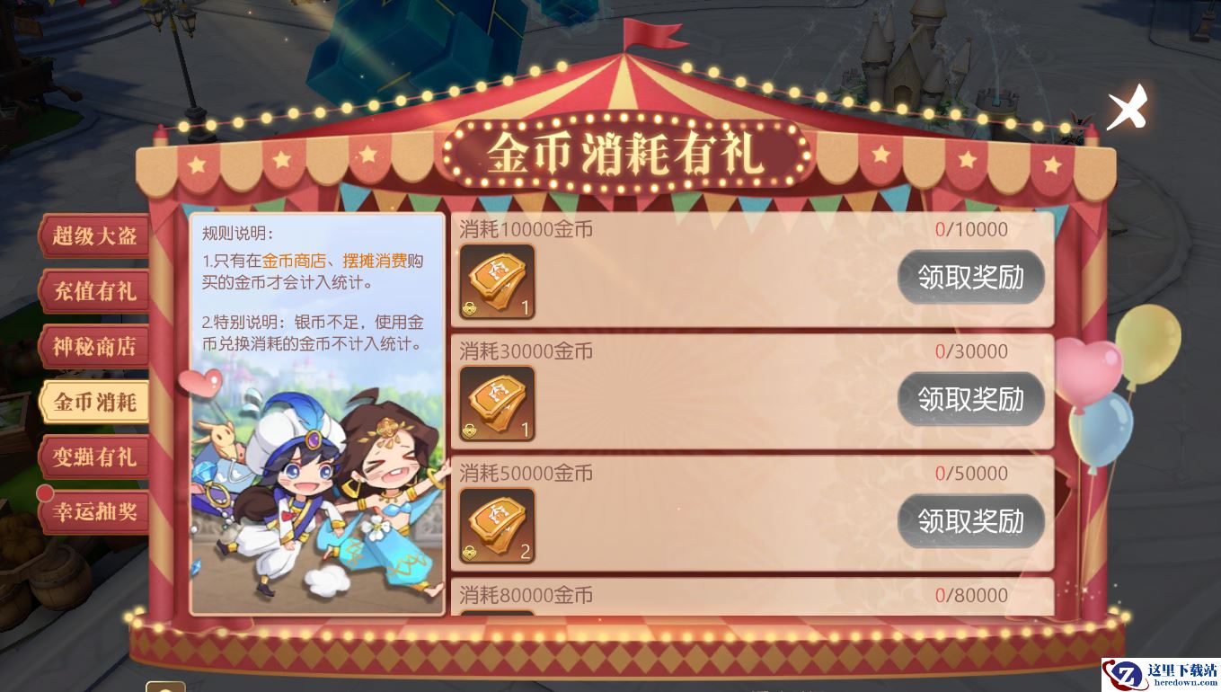 【奖励说明】:在活动期间内消耗金币达到一定数量即可获得庆典礼券,可使用礼券进入幸运抽奖池试试运气哦~