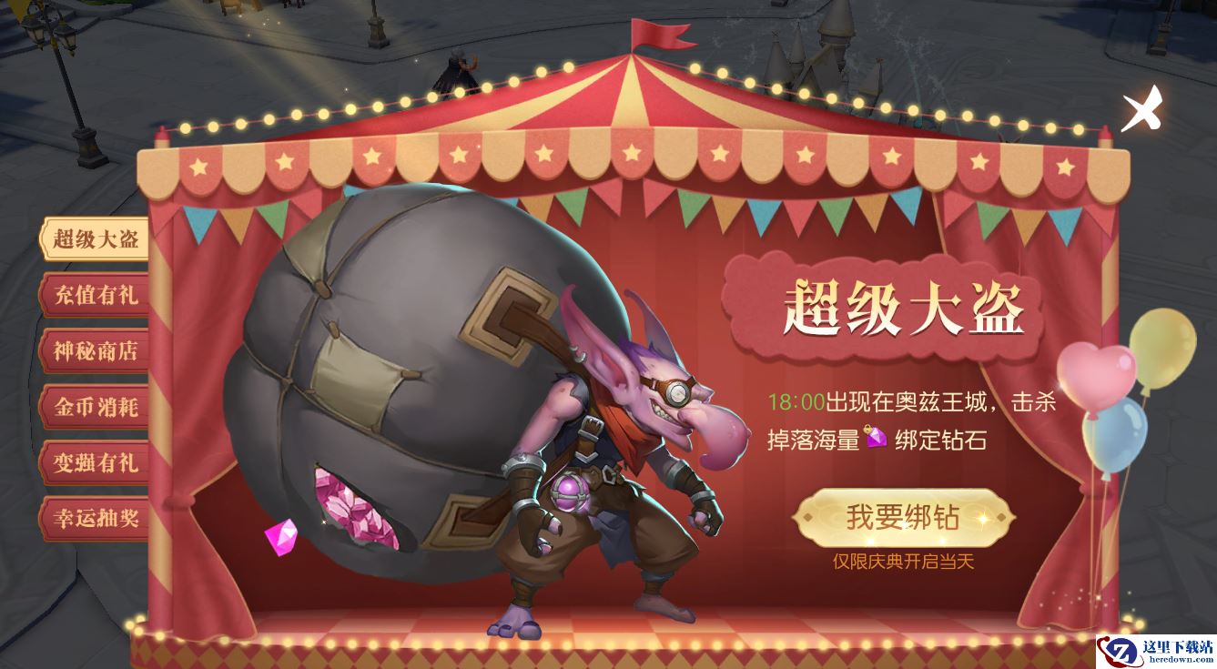 【参与方式】:点击“童话庆典”,在超级大盗页面选择“我要绑钻”即可参与。