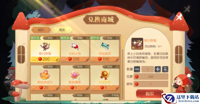 【活动说明】:活动期间,节日限定代币“绿叶”和“果实”可兑换不同道具。“绿叶”可兑换植树节头像框/气泡框、棒棒糖果和星印碎片等;“果实”可兑换“春日野餐”背饰、“俏皮狼耳”和“无忧小兔”头饰等众多好礼!