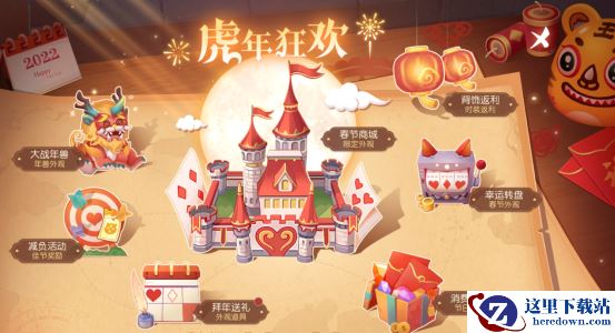 【奖励说明】:“庆新春”商城中年兽挑战券、恭喜发财头饰和棒棒糖果等精美奖励可兑换;“度佳节”商城中可兑换佳期如梦服饰、烟火礼赞武饰和萌虎贺新春服饰等春节限定好礼!