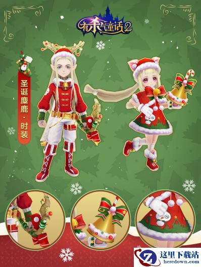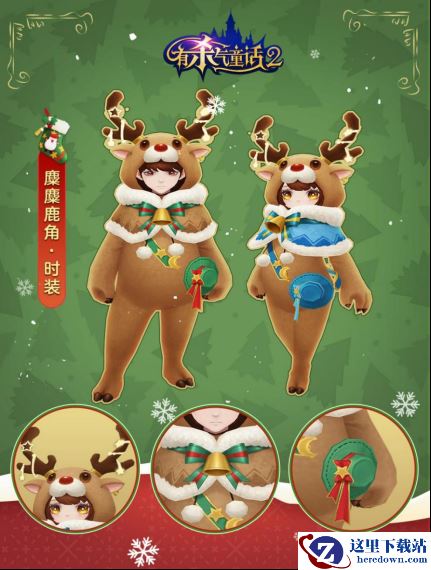 【奖励设置】:圣诞节主题套装“圣诞麋鹿”、“麋鹿鹿角”、主题武饰“圣诞节派对”、主题背饰“圣诞颂歌”、头像框与气泡框“森林与鹿”、主题头饰“红鼻麋鹿”等精美外观,冒险者只需凭借“蛋糕”道具就能全部拥有!此外,头像框与气泡框“圣诞摇铃”等福利,冒险者也能凭借“苹果”道具轻松换购。