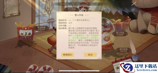 【参与方式】:冒险者5人组队,队长点击圣诞节节日面板,选择“雪人大作战”进入。
