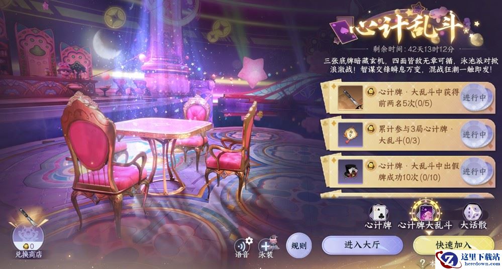 【心计乱斗】伴随全新【心计牌·大乱斗】玩法登场!三张底牌暗藏玄机,四面皆敌无章可循,泳池派对掀浪激战!智谋交锋瞬息万变,混战狂潮一触即发!