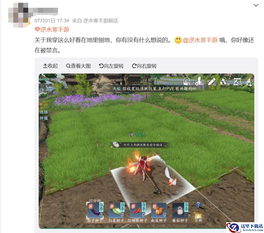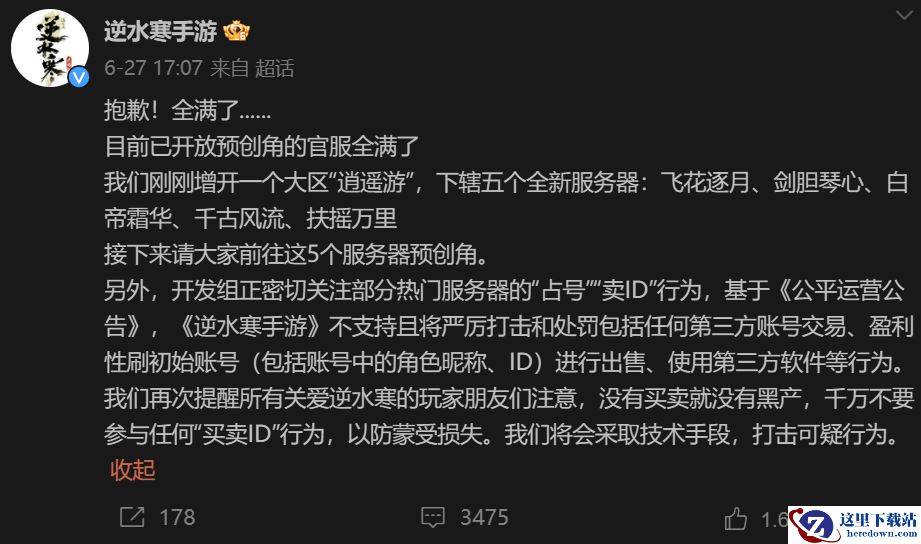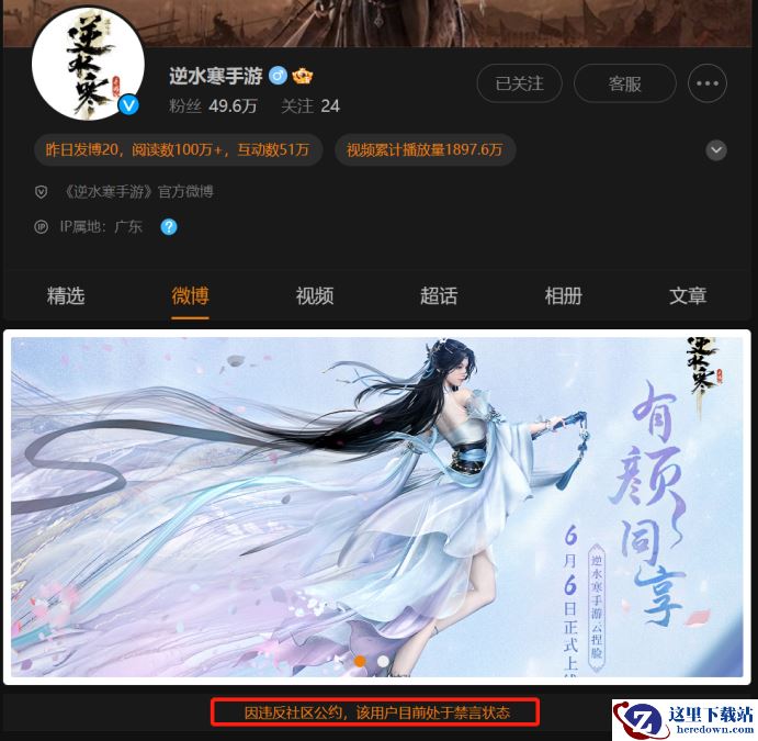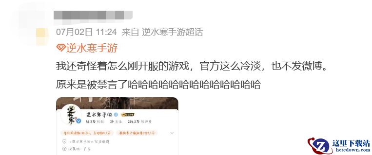 但就在这红红火火,正要享受胜利果实之际,《逆水寒》手游官方微博的账号……就在游戏开服当天中午被禁言了。