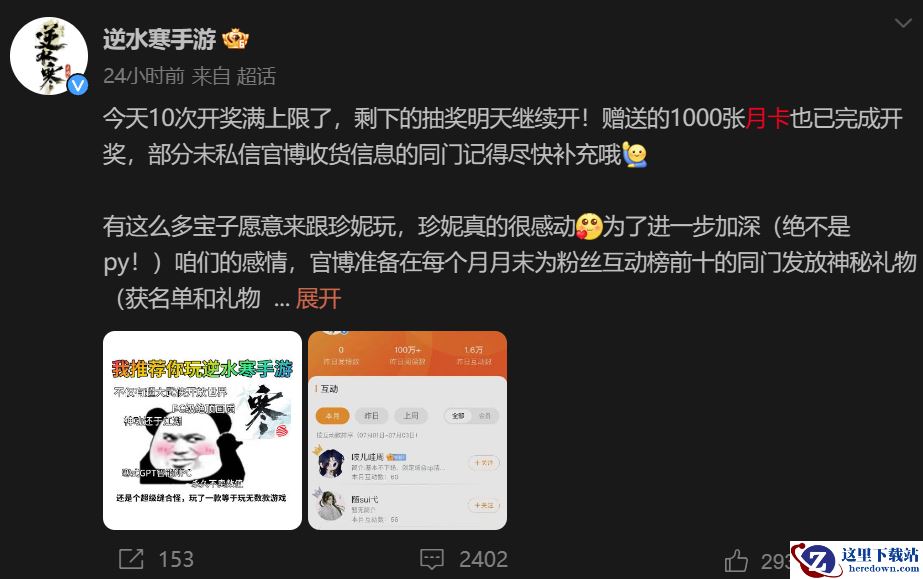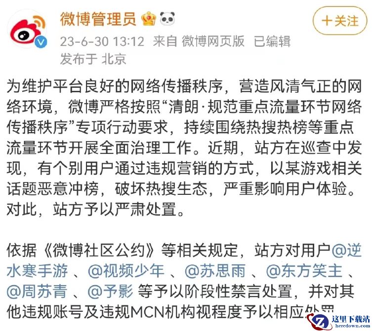 关于这件事,微博官方给出的说法是《逆水寒》手游官方涉嫌违规营销、恶意冲榜,因此对其进行阶段性禁言。
