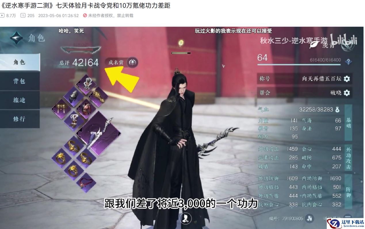 《逆水寒》手游二测期间,有位名为“秋水三少”的B站UP主对游戏内氪金与不氪金账号进行了一次对比。结果发现10万氪的氪佬和月卡战令党在战力上差距只有3000,木桩秒伤只差10%,在PVP里双方对决几乎五五开。