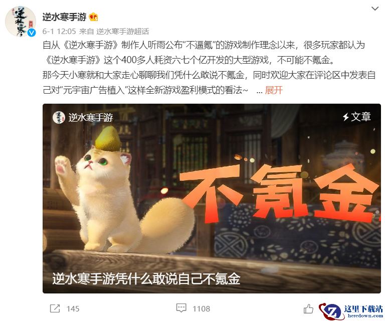这不禁让人想起去年《逆水寒》手游初曝光时,那个打在他们主页文章上大大的“不氪金”三个字。