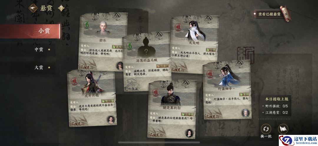 玩家解锁捕快身份后,即可在悬赏榜上领取悬赏任务,参与到对坏人的追捕中。