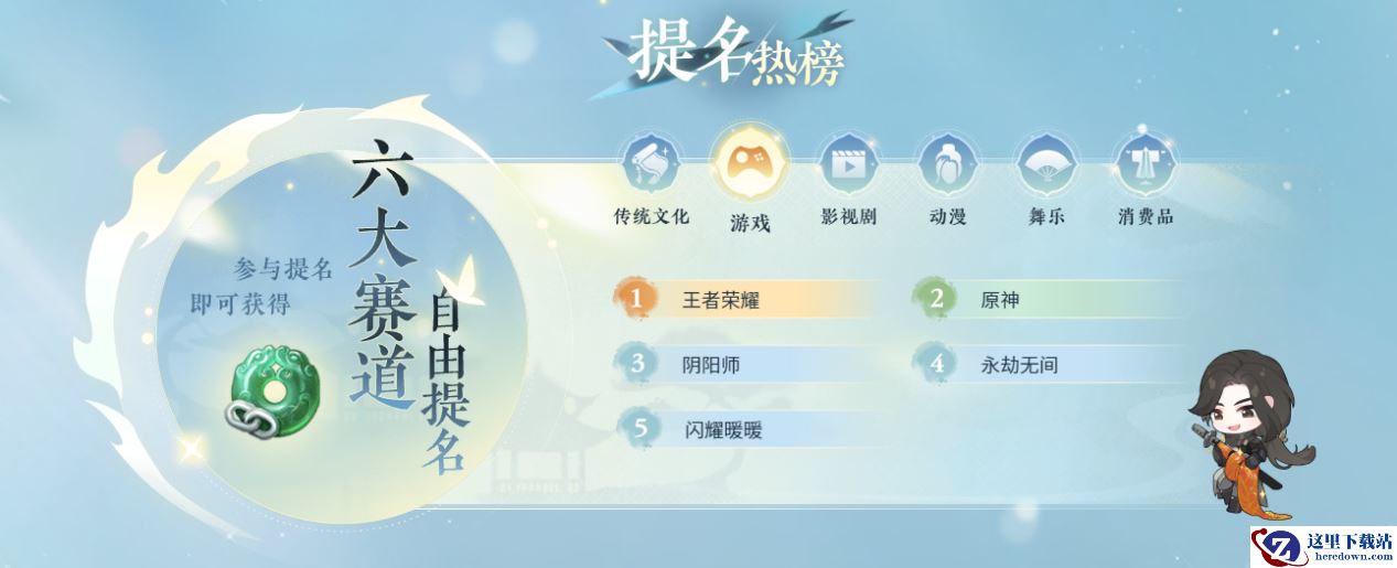 根据此前消息,逆水寒手游全新资料片“谪仙雷吟”中包含了一个联动计划“我的江湖我做主”,邀请5000万玩家投票决定联动合作的对象。截止今日,游戏赛道投票排名TOP5分别为:王者荣耀、原神、阴阳师、永劫无间、闪耀暖暖。