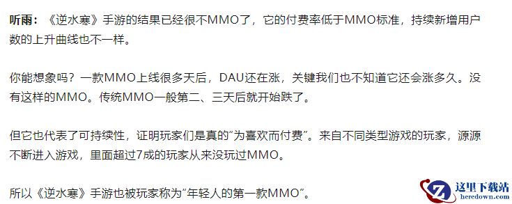 而逆水寒也在源源不断地提供优质内容,虽然官方常自我调侃“缝合怪”,但加入的新玩法确实备受玩家好评,玩家间的口口相传也吸引了大量新玩家加入。制作人听雨在接受采访时也表示:“很难想象一款MMO开服很多天后,DAU竟然还在不断地增长”