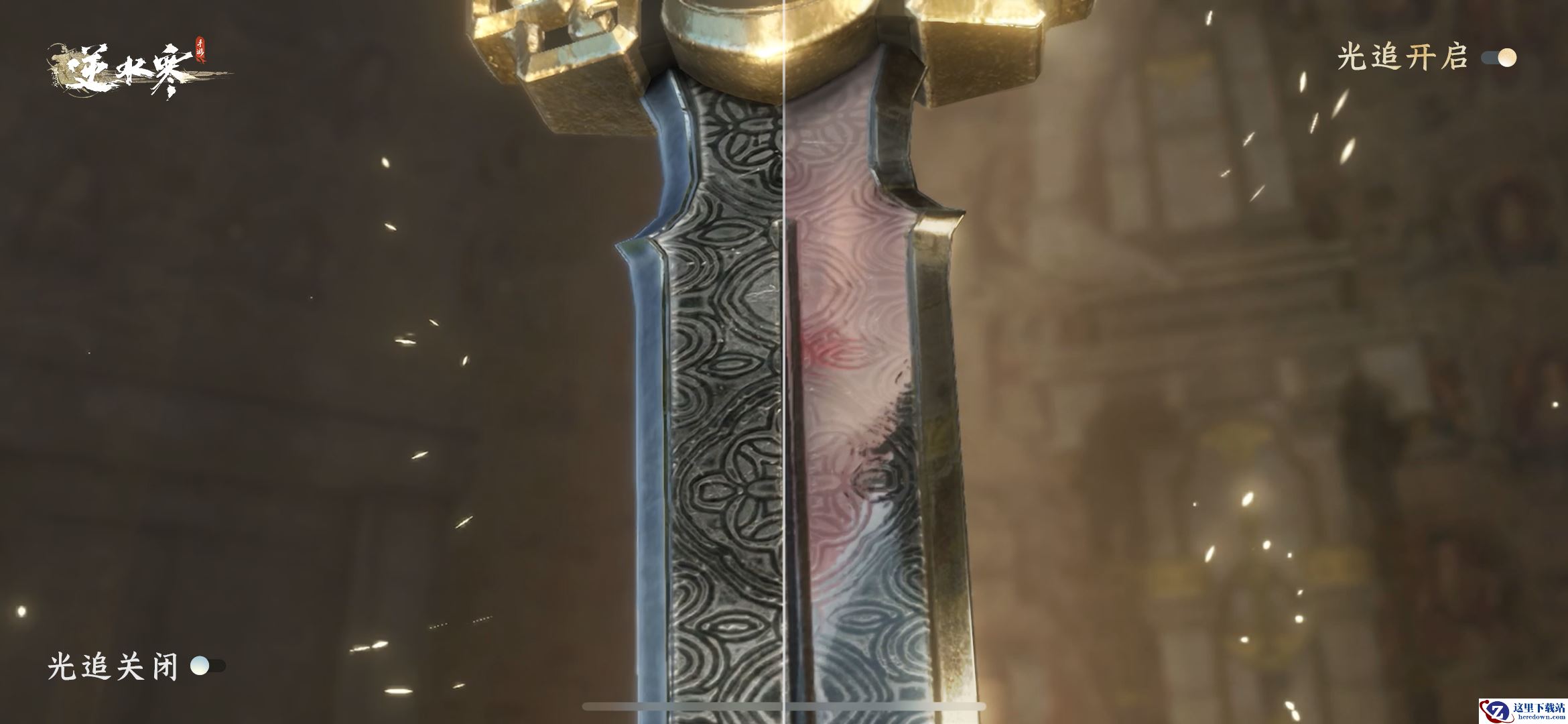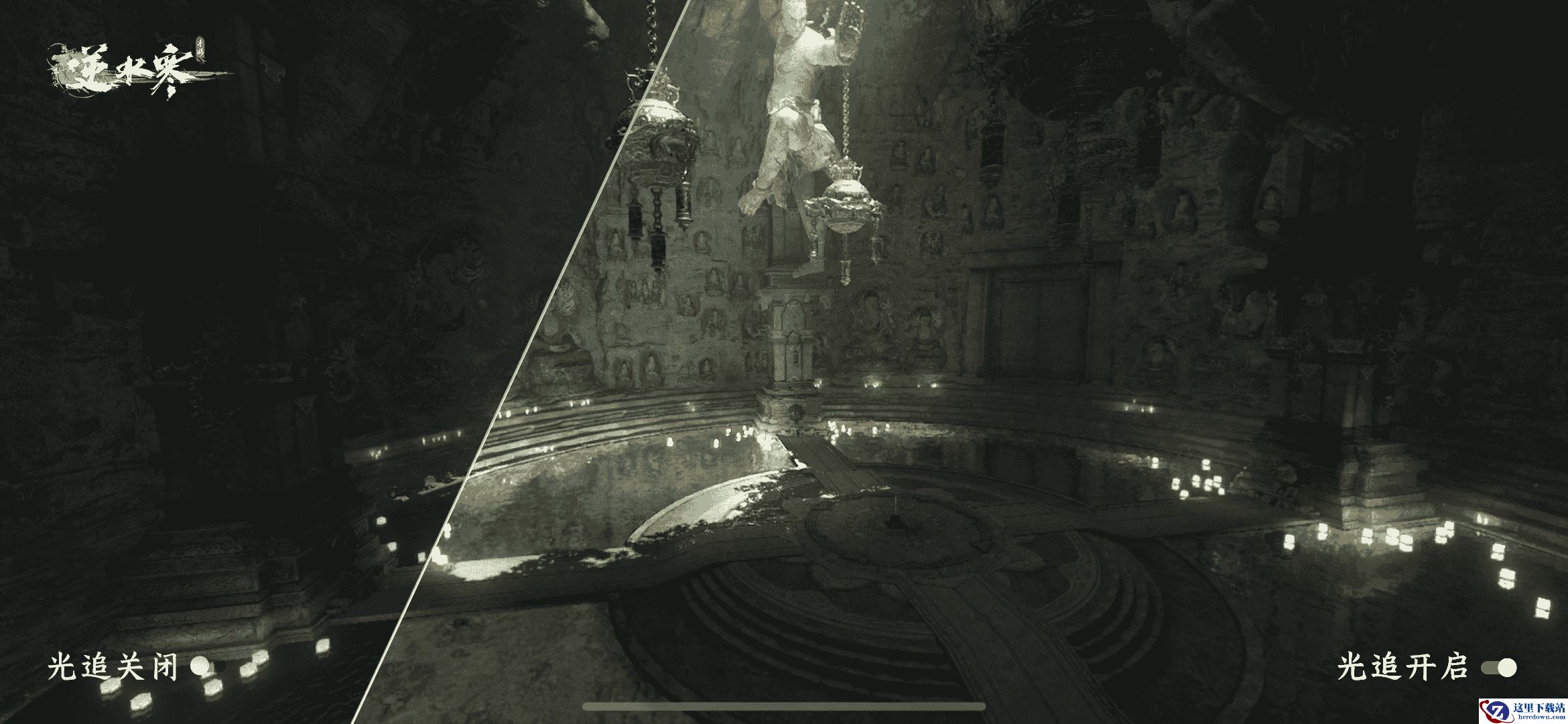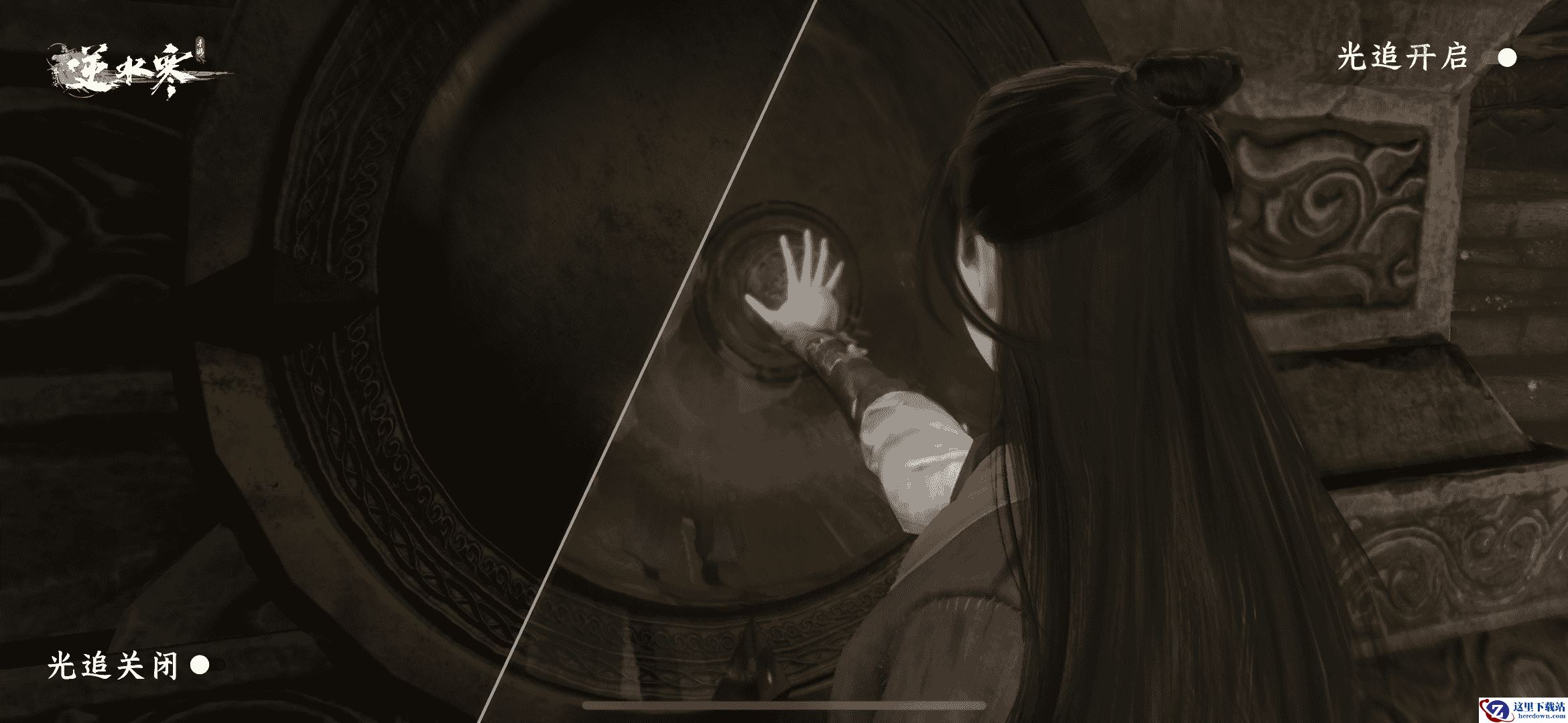 当光线追踪(Ray tracing)开启时,水面、铜镜表面、宝剑剑刃都会准确反馈周遭的景象,通过追踪每一缕光线的照射和反射轨迹,精确展示每个场景物品元素的细节,展现出如同现实世界的真实感。