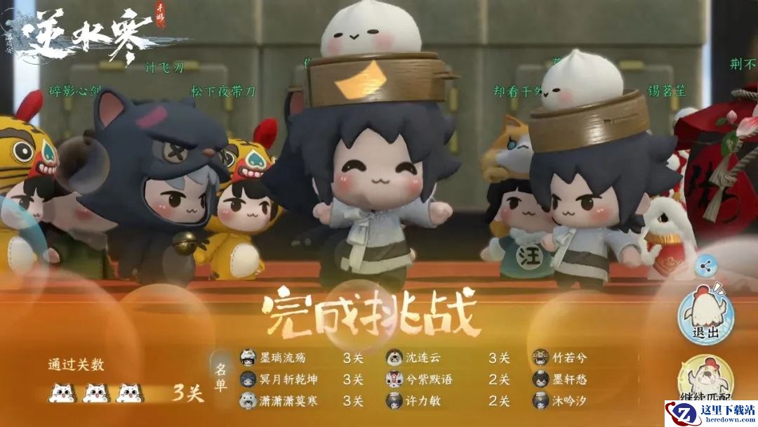 《逆水寒》手游的“圆萌乐向前冲”玩起来很简单,匹配成功后,30个玩家会自动变成圆萌乐同场竞技,每场会有3个随机关卡。关卡分为两大类,一种是竞速关,在60秒或90秒内跑到终点就是胜利,另一种是生存关,在60秒内没有掉进水里就算胜利。