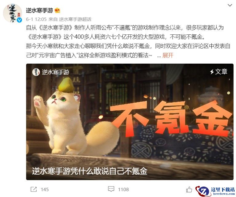 那些希望和《逆水寒》手游合作的企业可以和官方展开合作,以软植入的形式,用更为玩家接受的面貌,进入游戏世界中。在这种全新的游戏营收模式下,玩家们不花钱,游戏公司赚钱,广告买家赚了关注,没有任何人受伤的世界就这样诞生了。