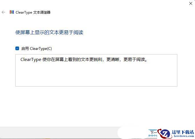 4、然后,在弹出的向导窗口中,勾选“启用Clear Type”,并点击“下一页”,直到完成。