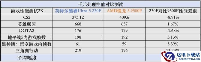 在2K游戏性能表现上,三角洲的游戏帧数领先11.73%,230F的综合领先幅度在1.56%,综合来看的话,酷睿230F配合上RTX 5070显卡,基本上能够通吃各类2K游戏。