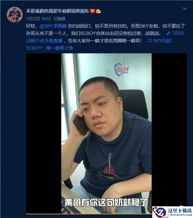 SCBOY孙一峰随即也对SKY的挑战做了回应,直言自己在电竞圈从没有怕过任何人,表示输了就爆料屈辱的事!