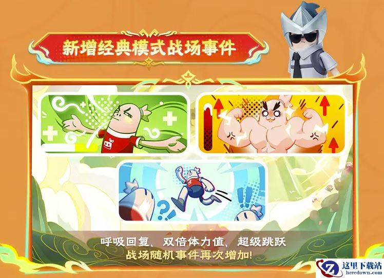 如果你是热衷经典模式的香肠老玩家,新增的战场事件一定会让你玩的更开心。本赛季的经典模式中,将新增“使脱战的肠肠自动回复体力值”的呼吸回复事件,令人不由得想起另一款呼吸回血的FPS大作;双倍体力值事件会让肠肠变得更强壮、体力值直接翻倍;“超级跳跃”事件更是让肠肠普通跳跃和二段跳跃的高度翻倍,且没有落地僵直,让本就无限搞怪的战场变得更加欢乐。