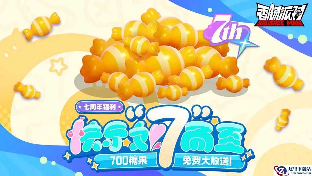 依照往年的惯例,香肠派对依旧会在活动期间大发福利:本次七周年庆典中将会通过三次活动为玩家们免费送上700糖果。尤其是累计赠送500糖果的第三弹七周年福利,只需玩家每日登录后选择并发送一条送给肠岛的祝福弹幕即可领取。