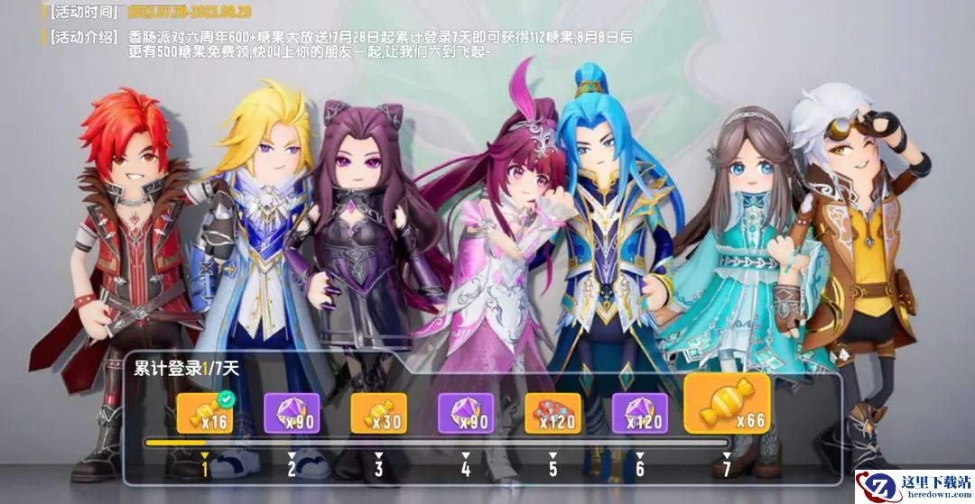 目前,官方已公布了六周年先行活动,本次活动中玩家只需累计登录7天即可免费领取糖果*112、占卜币*300、缤纷补给箱钥匙*120等海量好礼。不仅如此,继《香肠派对》五周年庆典时联动的《刺客伍六七》之后,香肠官方在六周年庆典选择了同样大人气的经典IP《斗罗大陆》进行全方位联动。