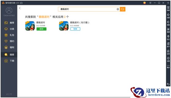 打开模拟器中的“雷电游戏中心”,搜索“香肠派对”下载游戏。