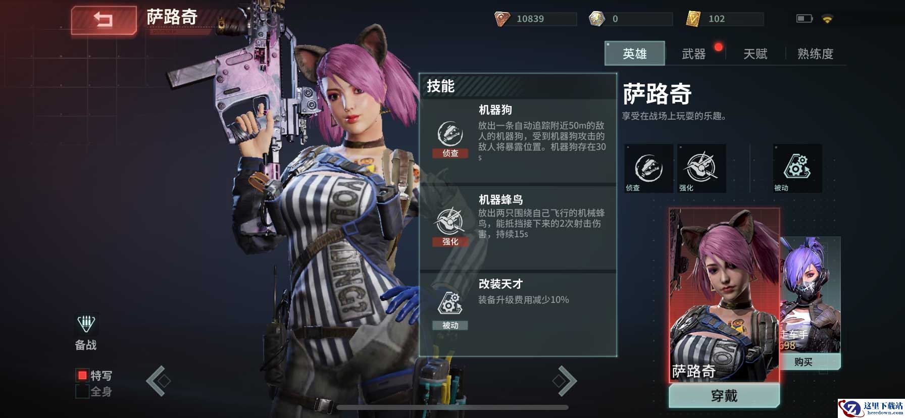 作为战场上最可爱的双马尾,萨路奇始终享受着在战场上玩耍的乐趣。她性格机灵古怪,平常就爱鼓捣一些科技产品,也将其用于战斗之中,其被动技能能够让装备升级费用减少10%。
