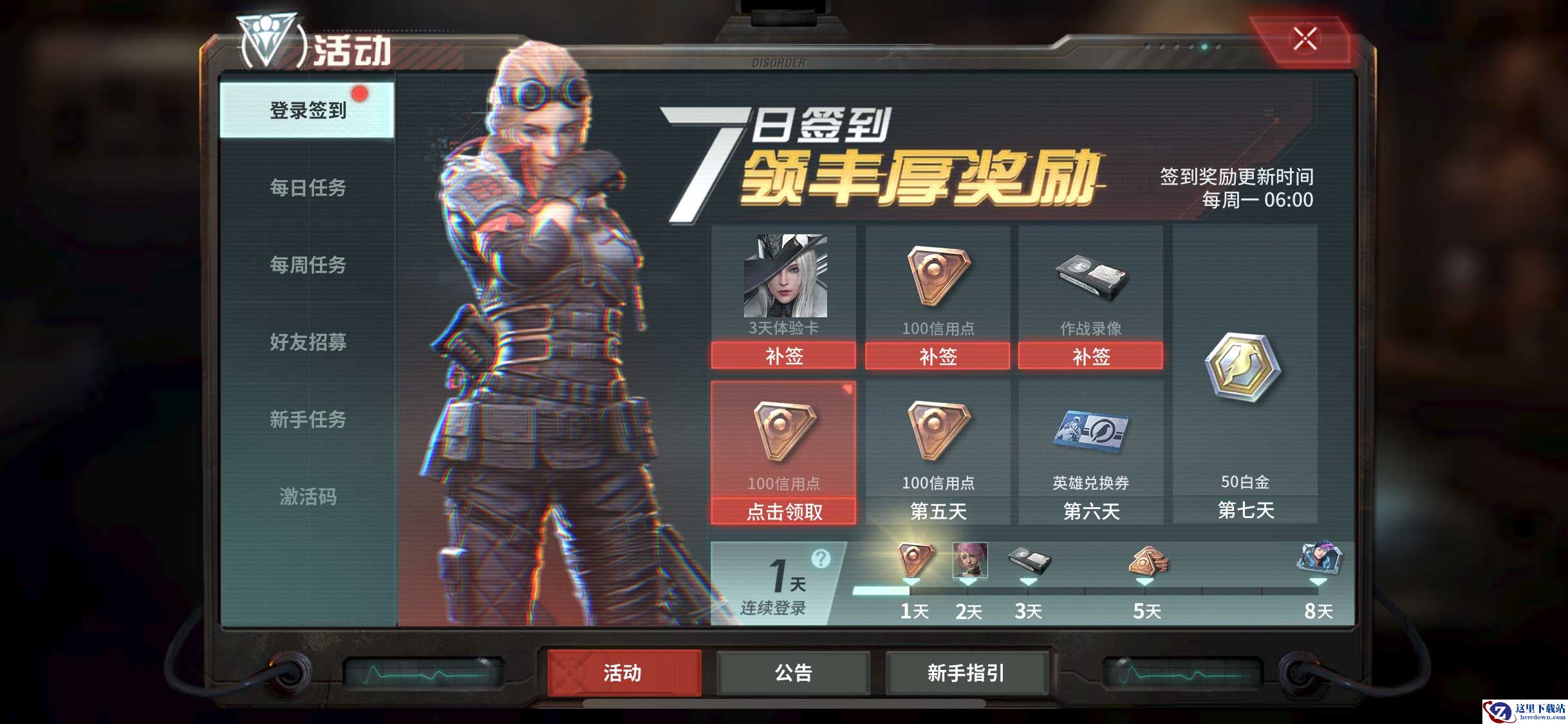 除了各具特色的战场角色,全新的据点玩法,《Disorder》新战场还有诸多福利好礼。每日登录签到皆有丰富的战场补给,如大量支票、白金、信用点等,连续登录2天更可获得角色“萨路奇”的测试期间使用权,连续登录8天更能在国服正式上线时获得首位中国角色——苏木!请注意通过网易游戏账号或手机号登录游戏,方便补给领取。