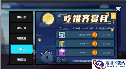 5个月饼可兑换中秋中宝箱,可开出随机精良配件或中量技能书。