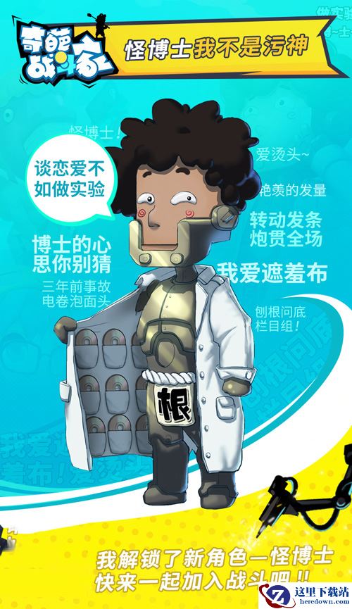 丑到深处自然萌的“怪博士”,个性有些古怪,一直沉迷在科学实验中无法自拔,三年前的实验事故让他至今是电卷泡面头,对于恋爱一点也不上心,但关键时候却能发动蓄能炮轰炸全场!