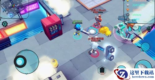 河中运送丰富物资,金币披萨武器样样有,你可以吸金币、吸武器、吸零食、吸队友,还能用马桶吸将敌人拉入河道群殴,但也要小心掉落河中会被鲨鱼咬死,除非自己爬上岸或向队友求助。