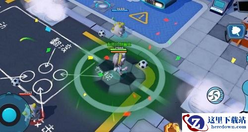 超级炫酷的终极技能800kg重击特效,在撞击地面时,迸出多彩的星星,原本地裂的特效也更换成了好多个小足球四散弹开的画面。
