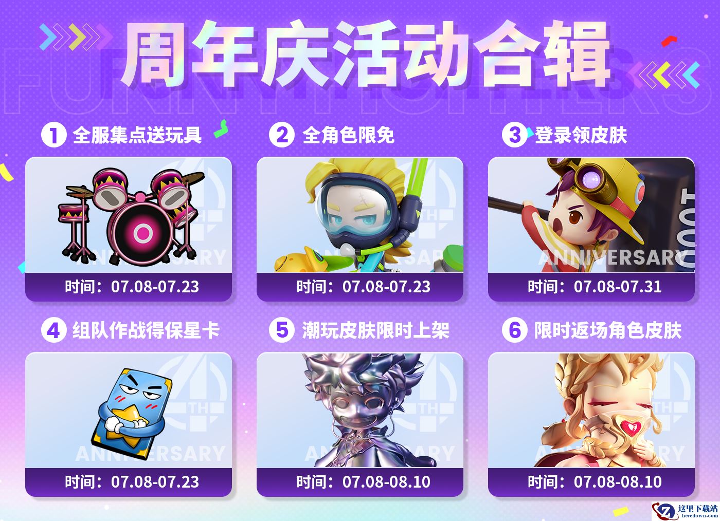 周年庆期间只要登录即可领取4周年限定的超哥炫彩皮肤和四周年限定头像,同时参与全服热度活动就可以领取周年限定玩具架子鼓