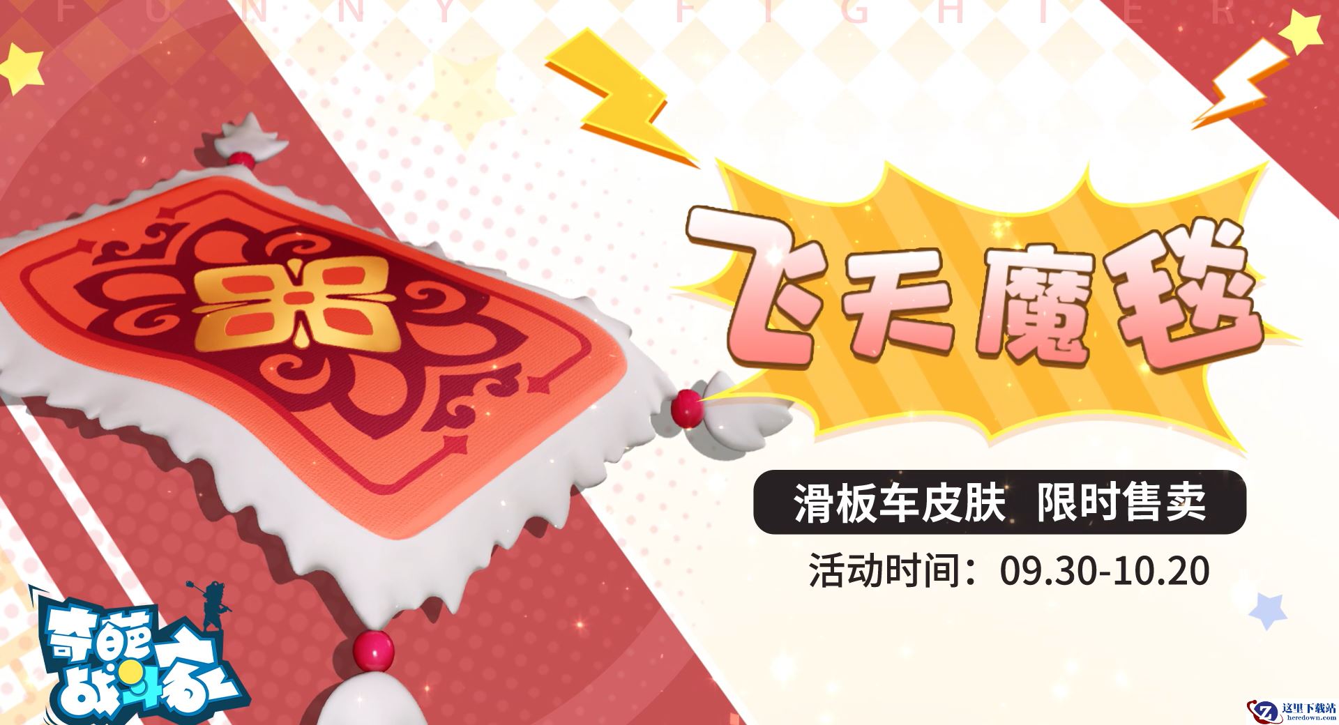 滑板车载具传说皮肤【飞天魔毯】带着浓郁的大漠气息于9月30日卷尘而来,快骑上飞毯,去沙漠中探寻神秘传说!飞天魔毯赋予了战斗家们快速移动的能力,为奇葩大陆带来闪耀尘晶,开启梦幻般的旅程!虽然它不能为你规避伤害,但可以驰骋赛场,所向披靡!